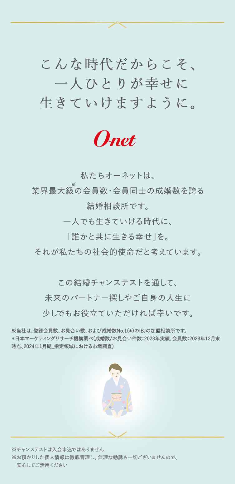 ※独身で20歳以上の方(男性は定職をお持ちの方)が対象です